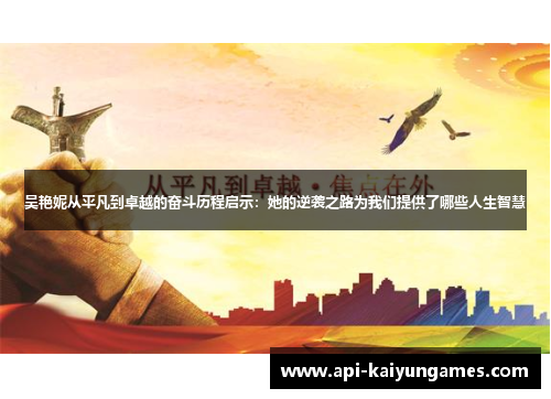 吴艳妮作为一位普通女性,通过不懈的努力与奋斗,成功实现了从平凡到卓越的逆袭之路。她的经历不仅是个人成长的缩影,更是每一个在平凡生活中追求卓越的人的真实写照。从她的奋斗历程中,我们可以提炼出多方面的智慧和启示。她的成功并非偶然,而是通过坚持自我、迎难而上、不断学习、正确定位等方式逐步实现的。这些智慧和做法可以为我们提供宝贵的人生指引,帮助我们在迷茫和困境中找到前行的道路。本文将从四个方面详细分析吴艳妮的逆袭之路为我们提供的人生智慧,分别是:坚持自我与坚定信念、面对挑战与勇于突破、不断学习与自我提升、合理规划与目标明确。每一个方面都将为我们揭示成功的秘密,启发我们在追求卓越的过程中如何避开陷阱,走向更好的未来。